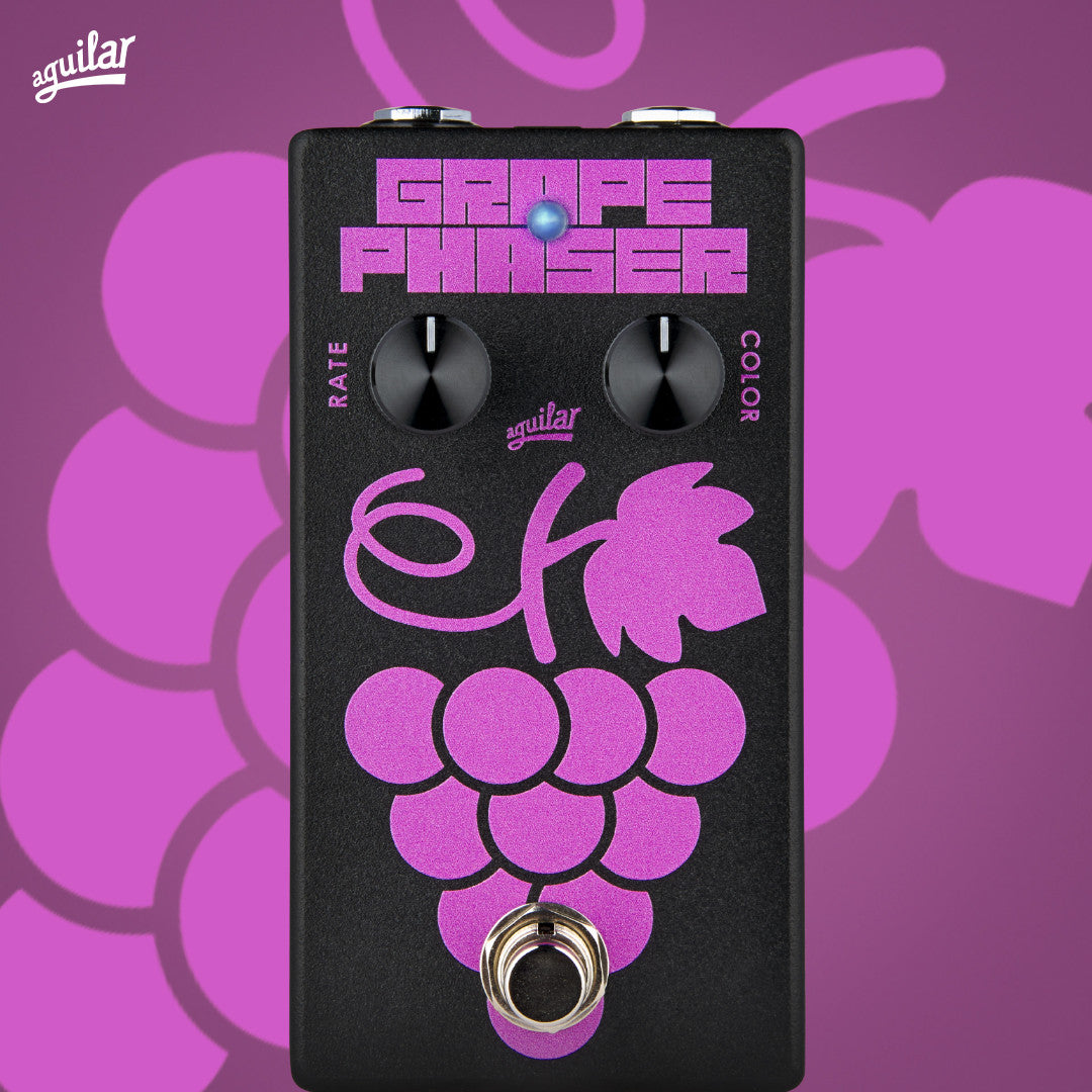 GRAPE PHASER- Bass PhaseIconic Aguilar circuitry gets a fresh new look!The Grape Phaser provides lush, analog phase shifting courtesy of a simple, two-knob layout. RATE controls the speed of the modulation, while COLOR feeds a portion of the signal back through the phase shifting circuit, creating new and super funky bass sounds!