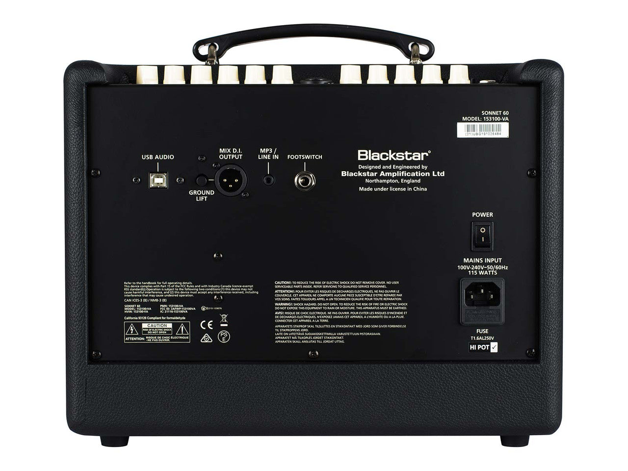 The Blackstar Sonnet 60 60W acoustic guitar combo amp is powerful, light and compact, and the adjustable or removable tilt-back stand projects the sound for any performance. Not changed, not colored, just your acoustic guitar – louder.
