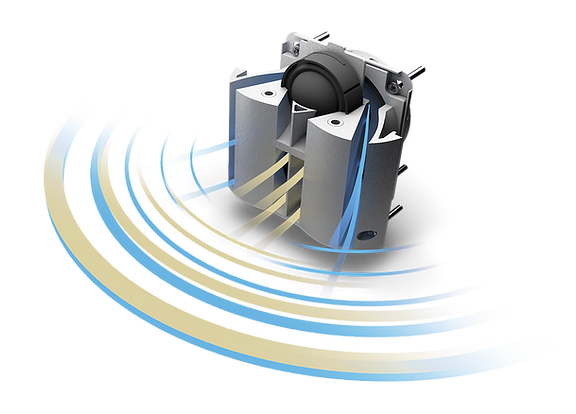 A skillful blend of select materials emphasizes the MAUI P900's integrated design approach. Providing high strength and superb corrosion resistance, the aluminium body is furnished with a grille of multilayer mesh. The elastic high-tech material is dirt-repellent, extremely hardwearing and allows sound waves to pass through without hindrance or colouration.