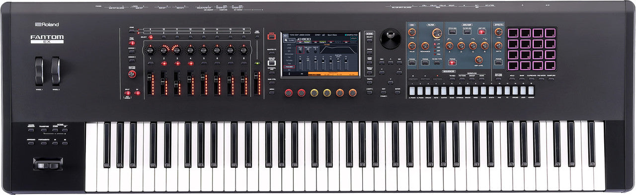 Packing all the features of its renowned predecessor — and much more — FANTOM EX brings you up to date with Roland’s most advanced technologies and gives you a robust creative ecosystem for music composition, performance, sequencing, and professional sound design. Onboard are dozens of simultaneous effects, including new studio-grade reverbs and updated Master FX for shaping your overall sound. With its ergonomic panel fitted with knobs, buttons, and sliders, FANTOM EX provides the real-time control you need to compose your music and shape sounds on the fly as its beautiful color touchscreen dynamically adapts to support the task at hand. And you can personalize the look by importing custom images for the screensaver and startup view.