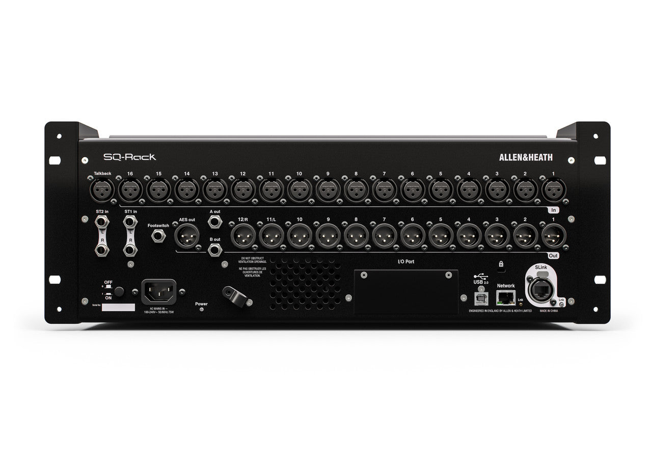 Experience the power of digital mixing in a compact 4 RU enclosure with the Allen & Heath SQ-Rack, a 48-channel, 36-bus digital mixing console well suited for live sound, corporate A/V, recording studios, and houses of worship. The SQ-Rack features 16 professional-quality microphone preamps, eight stereo FX engines with dedicated return channels, and access to the RackExtra FX library with dozens of emulation of legendary classic reverbs, delays, modulators, and more. The mixer's 12 stereo outputs (configurable as groups or auxes) are well suited for in-ear-monitor setups, while the Auto Mic Mixing function offers quick and easy operation over multiple microphones for conferences, panel talks, and more.
