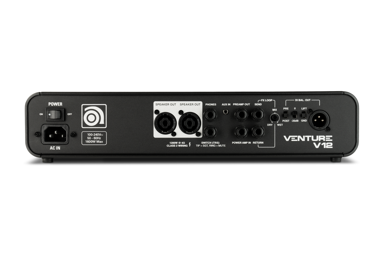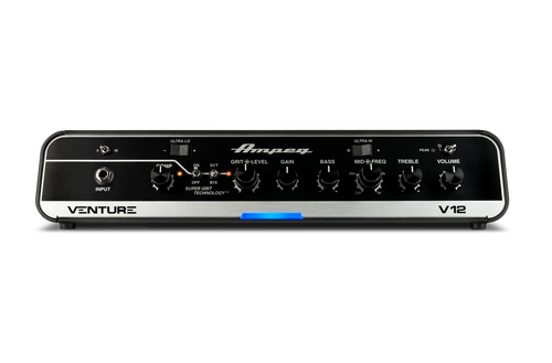 | Featuring easy-to-use and intuitive controls, the Venture V12 offers an extensive array of tone-shaping tools that include a legacy preamp, 3-band EQ with sweepable Mids, Ultra Hi and 3-way Ultra Lo switches, a Super Grit Technology™ (SGT™) Overdrive circuit with SVT® and B15 voicings, and a highly musical variable compressor. An effects loop with Mix control, an XLR direct output, an Aux input, and a Phones output enhance connectivity, as do the Neutrik® speakON® outputs. All circuitry is analog except for the solid-state Class D amplifier. Add an optional AFS2 footswitch for remote control of the SGT overdrive and other functions, and an optional heavy-duty padded Venture carrying bag to protect your Venture V12. |