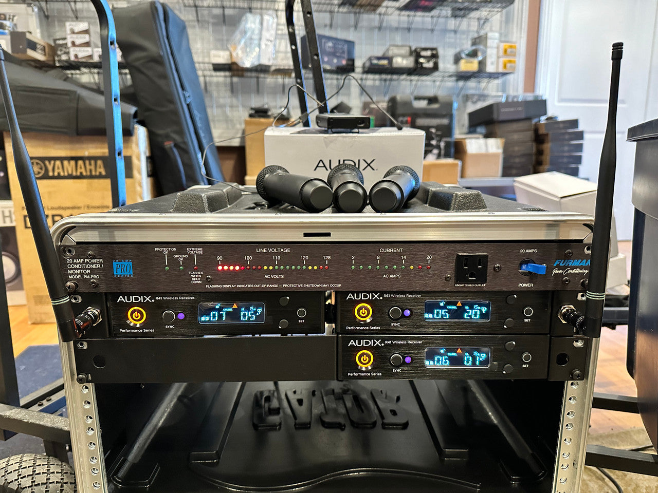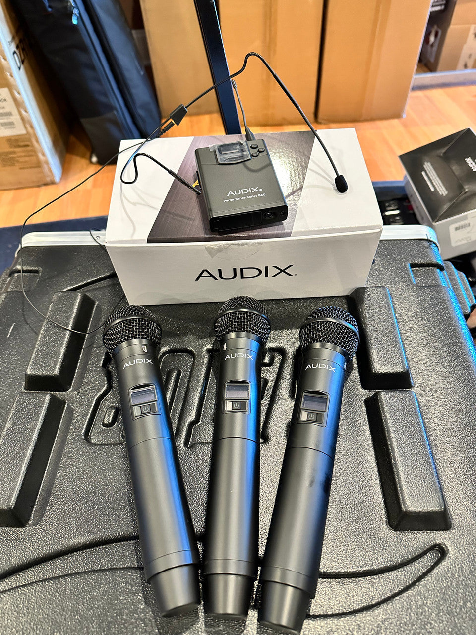 Audix 3 channel wireless microphones bodypack case headset power conditioner