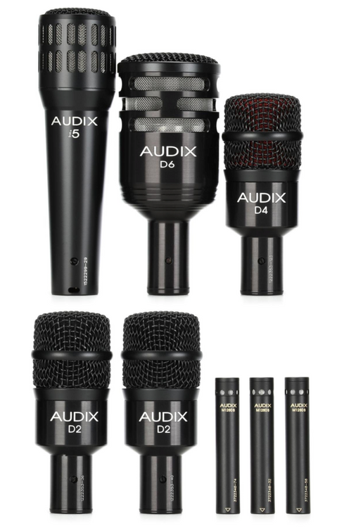 - Includes a D6 for kick drum, 2 D2s for rack toms, a D4 for floor toms, an i5 for snare drum, and 3 M1280B series mics for overheads and hi-hat