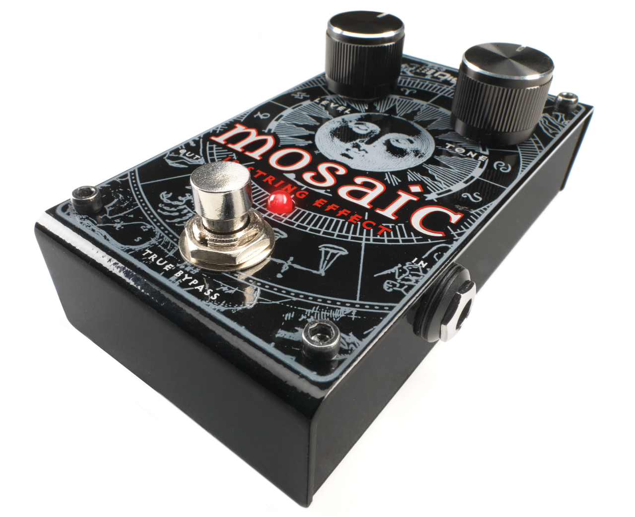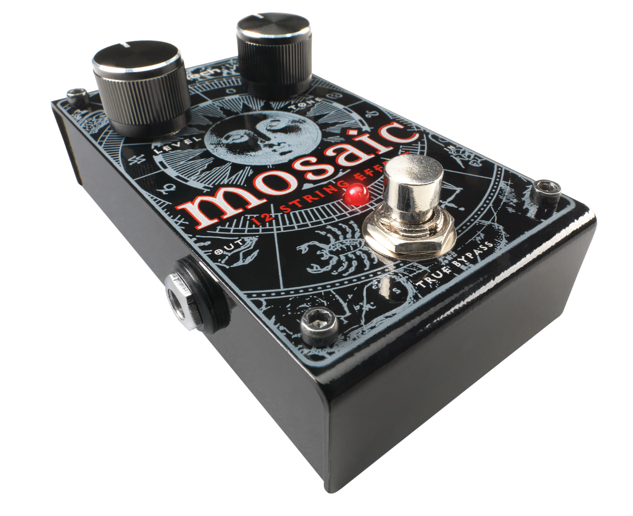 Tailor the Mosaic’s sound with the independent Level and Tone controls. Level will control the undefined-string effect intensity while Tone shapes the overall brightness of the effect. The Mosaic will give you a richer, more resonant and full tone than a standard six-string guitar. It is true bypass and uses a 9V DC power supply to easily integrate into your existing pedalboard.