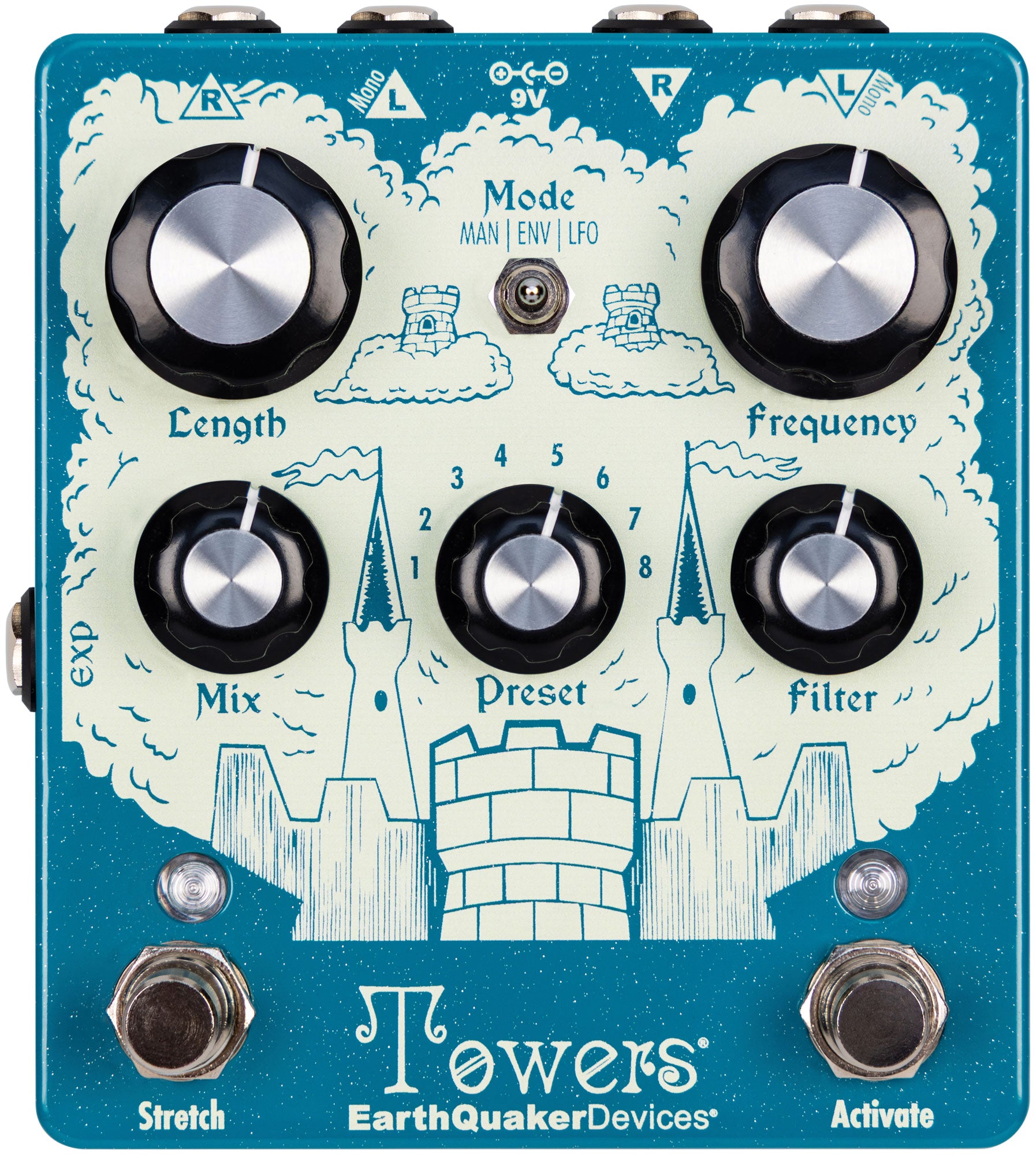 Towers is built by the skilled tone technicians of EarthQuaker Devices on the banks of the prestigious Ohio and Erie Canal located in the heart of the heart of it all, Akron, Ohio.