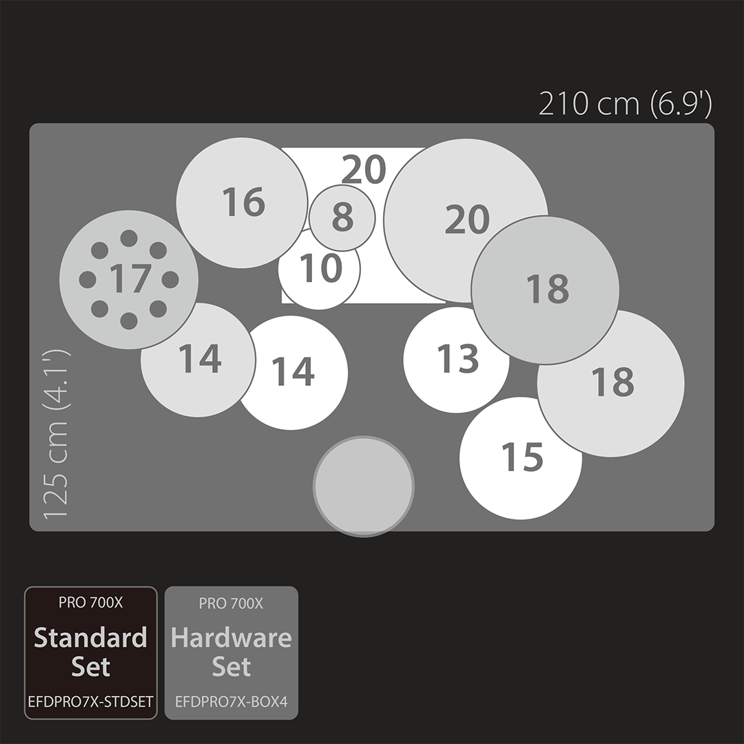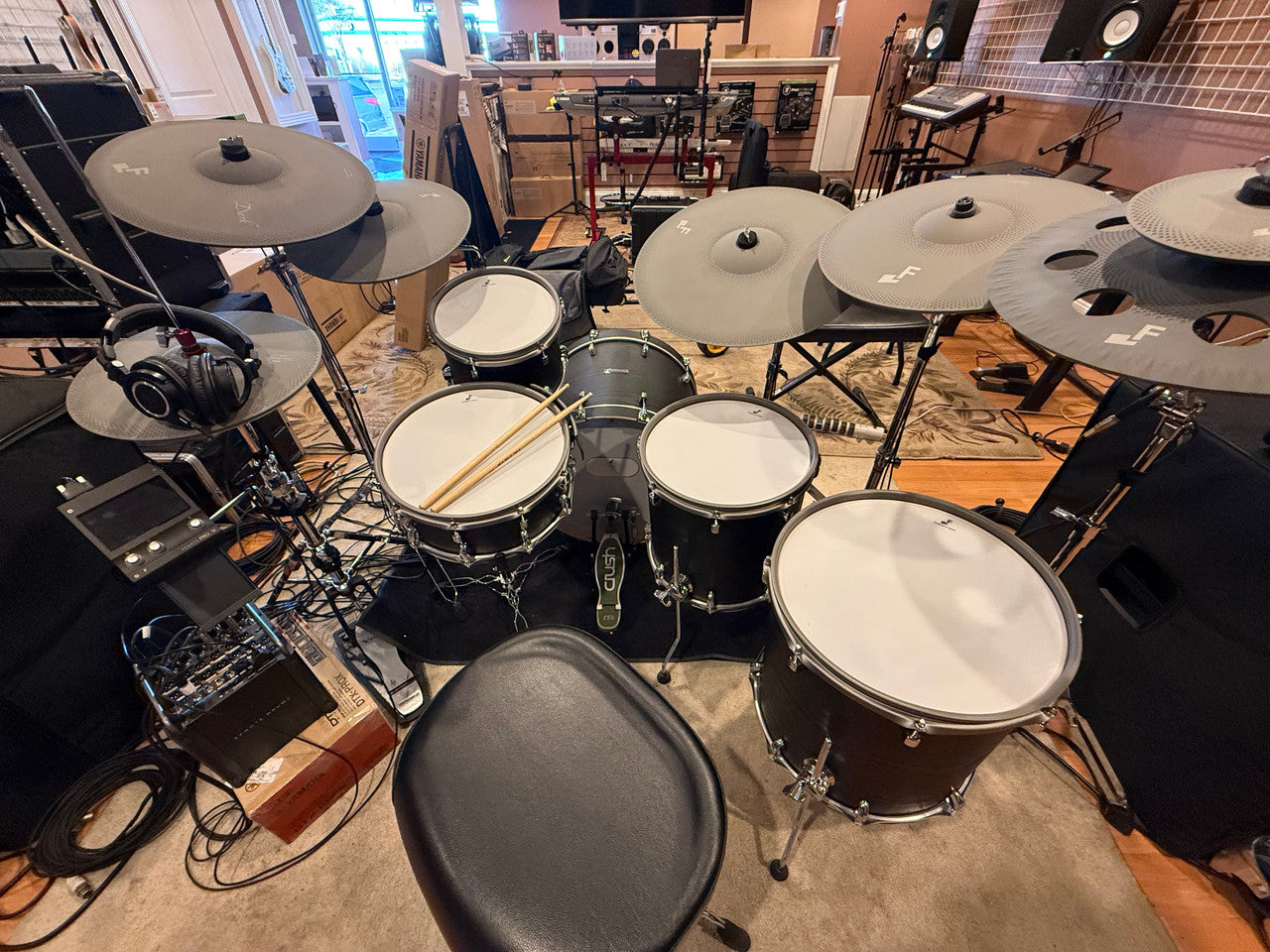 | Included From Manufacturer | 14" Hi-hats 16" Crash 2 x 18" Crash 17" China 20" Ride 8" Splash 14" Snare 10" Tom 13" Floor Tom 15" Floor Tom 20" Kick Drum Snare stand Cymbal stands (5) Splash Cymbal Mount Control module Control module mount Stage box Power adapter Multipin connection cable Trigger cables Bass drum pedal , hi-hat stand, and drum throne are not included. |
