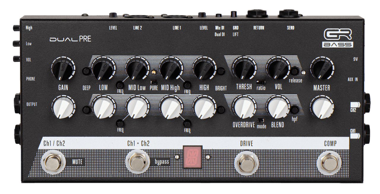 The GR Dual Pre pedal offers the best compromise between portability and versatility for the modern bass player.