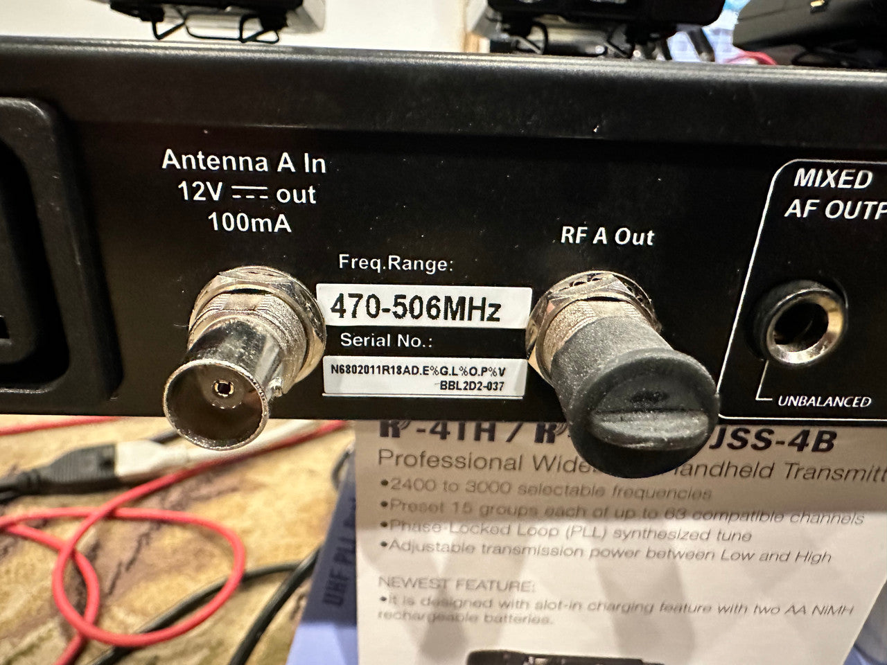 The system is designed with JTS newest generation wireless technology. To cope with the squeezed radio spectrum the system provides more compatible channels within limited bandwidth. The R-4 is a 4 channel system in a 19” one U case. Antenna outputs and AC power supply are designed to be cascaded. It provides great convenience to installation.