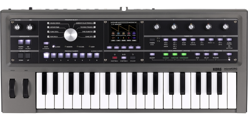 - The microKORG's control panel gets a vibrant makeover with a 2.8" color display. Visually edit sounds with animated parameter guides, keeping all five knobs in clear view for stress-free tweaking. With a single touch, you can transform the display into an oscilloscope, letting you watch your sound come alive.