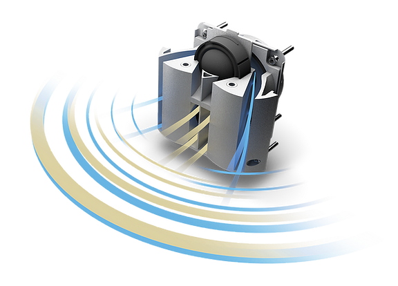 A skillful blend of select materials emphasizes the MAUI P900's integrated design approach. Providing high strength and superb corrosion resistance, the aluminium body is furnished with a grille of multilayer mesh. The elastic high-tech material is dirt-repellent, extremely hardwearing and allows sound waves to pass through without hindrance or colouration.