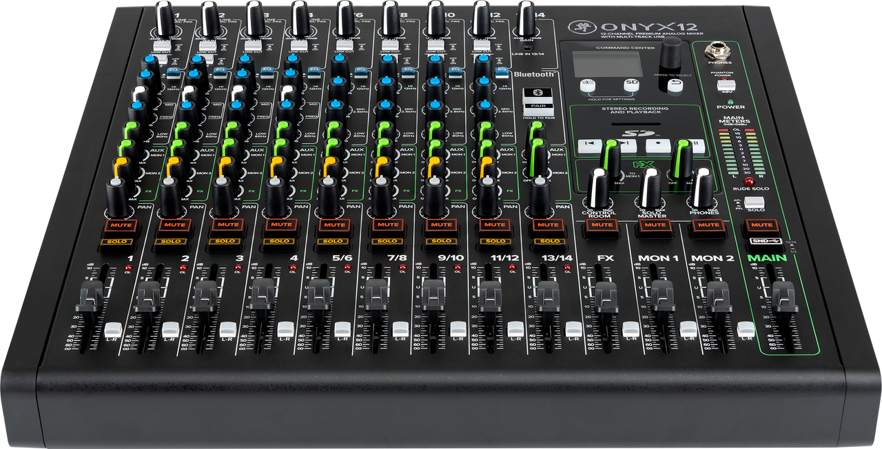 With its compact design and wide versatility, the Onyx12 analog mixer is ready to tackle practically any situation imaginable. Its stellar effects processor can handle everything from massive performances to studio recordings, live streams, and more, with adjustable parameters and a dedicated EQ making it easy to dial in that perfect sound. Bluetooth streaming capabilities allow you to connect your Bluetooth-enabled devices to any of the Onyx12's channels, with the streamed audio routed to either the Aux Sends or Main Mix.