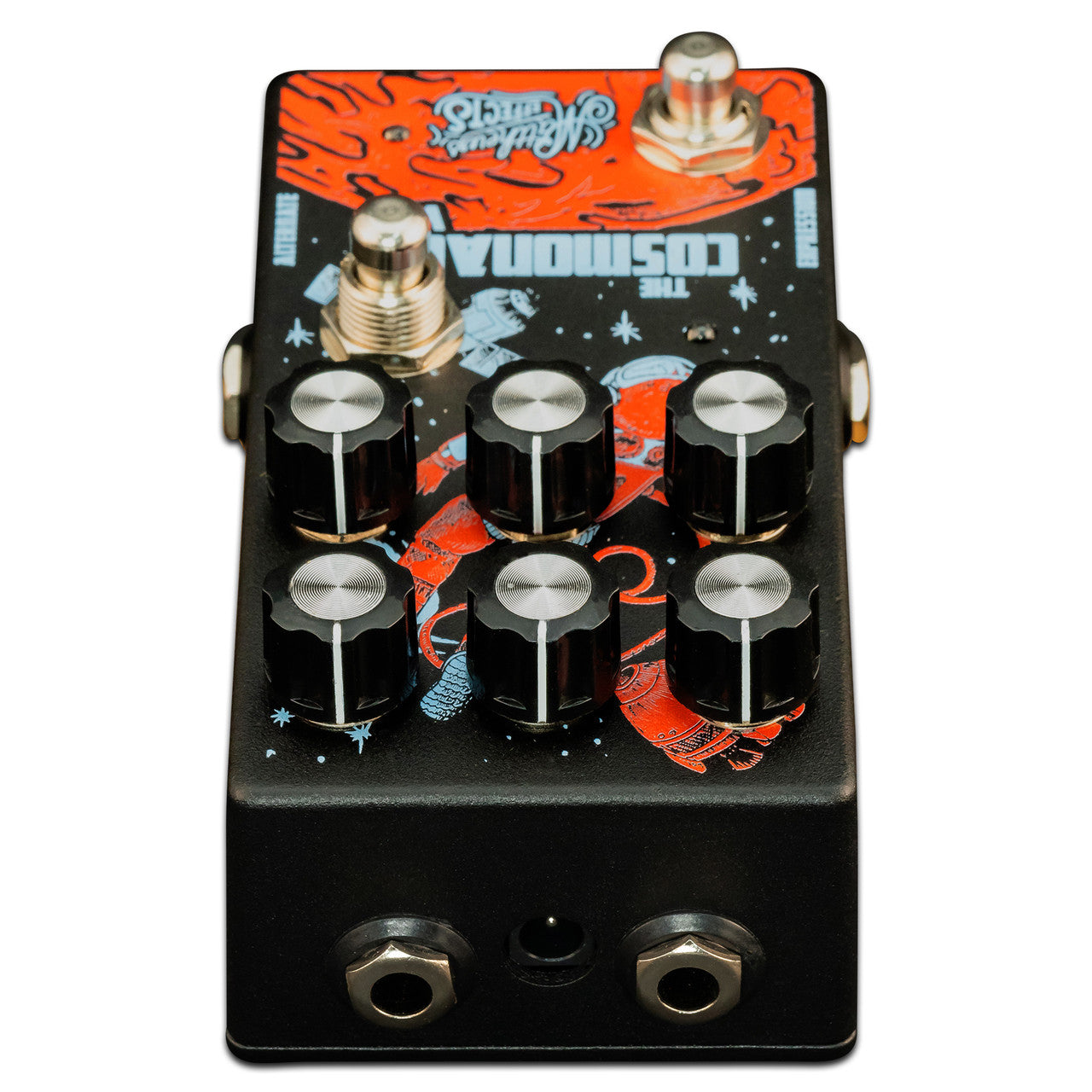 Alt Switch (secondary foot switch) - What sets the Cosmonaut V2 apart from other pedals is the Alt controls. The three knobs on the "Top" row of the pedal are duplicated on the "Bottom" row giving you two different settings/sounds which you can jump between. You can independently select the algorithms for each row using the slide switches on the side of the pedal. This creates a simple and straightforward way to get two dynamic sounds on the fly.