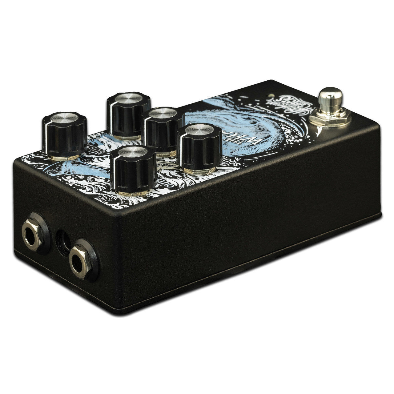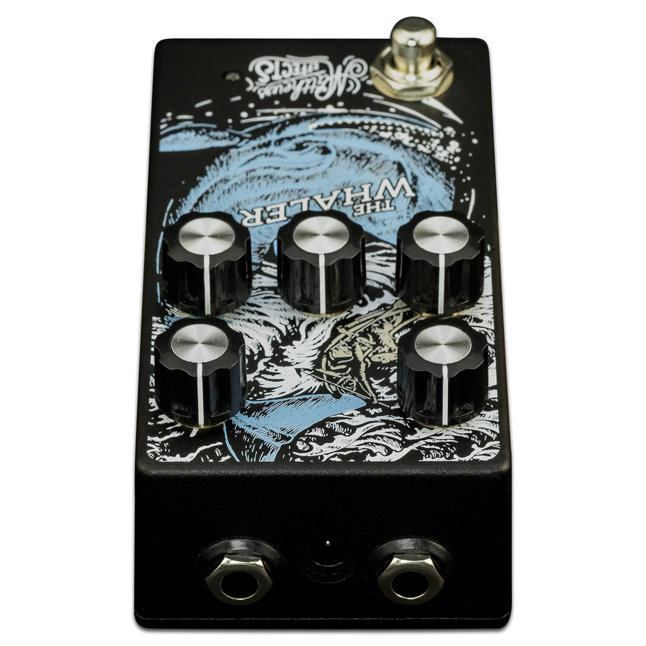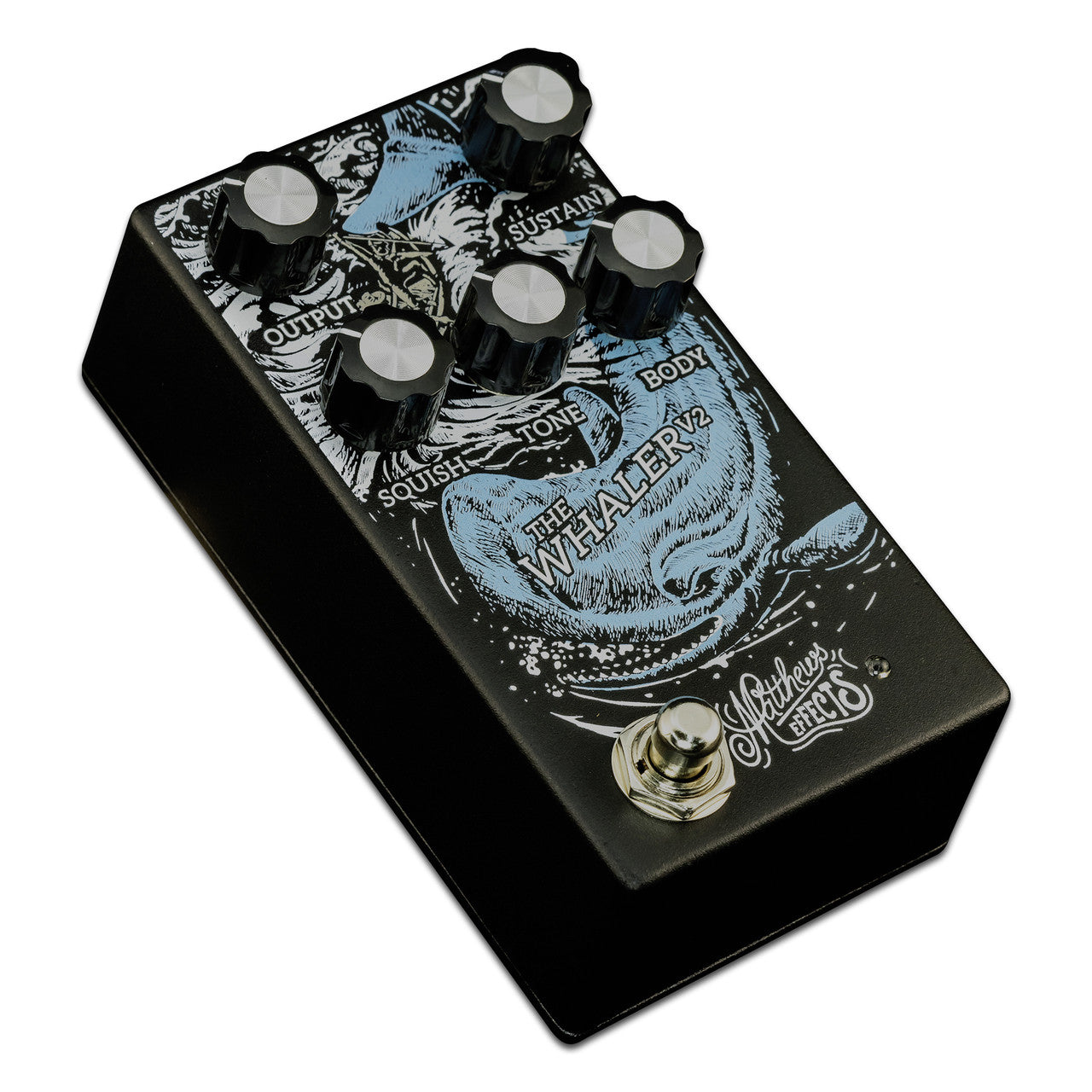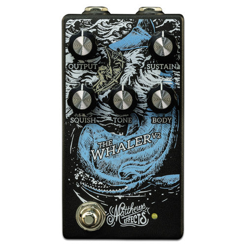 The Whaler V2 is an original fuzz pedal that takes your guitar from a Velcro monster of the depths, to a massive attacking beast of the sea. Built on a desire to find the elusive tone that is always taunting us, the Whaler V2 uses a truly original dynamic fuzz circuit that takes you from a pushed tube amp tone to fuzz hysteria. Dive into its deceptively simple controls for a deep wealth of tone unlike any other fuzz pedal. This new version has an added gain stage, substantially increasing The Whaler V2's range and depth of sound.