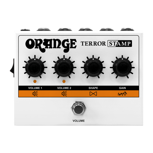 The Terror StAmp has simple, intuitive controls to help you get the most out of your amp as quickly as possible. It's equipped with Orange's exclusive Shape control that tweaks the character of the amp from a mid-forward voicing to a classic scoop. In addition to the traditional gain knob, the amp head has two independent master volume knobs to tweak to your liking. The onboard footswitch toggles between the dual volume controls to give you the amp's entire range of sound at two different volumes. Set one volume low for the verse and chorus, then kick on the higher volume and take center stage for your big solo.