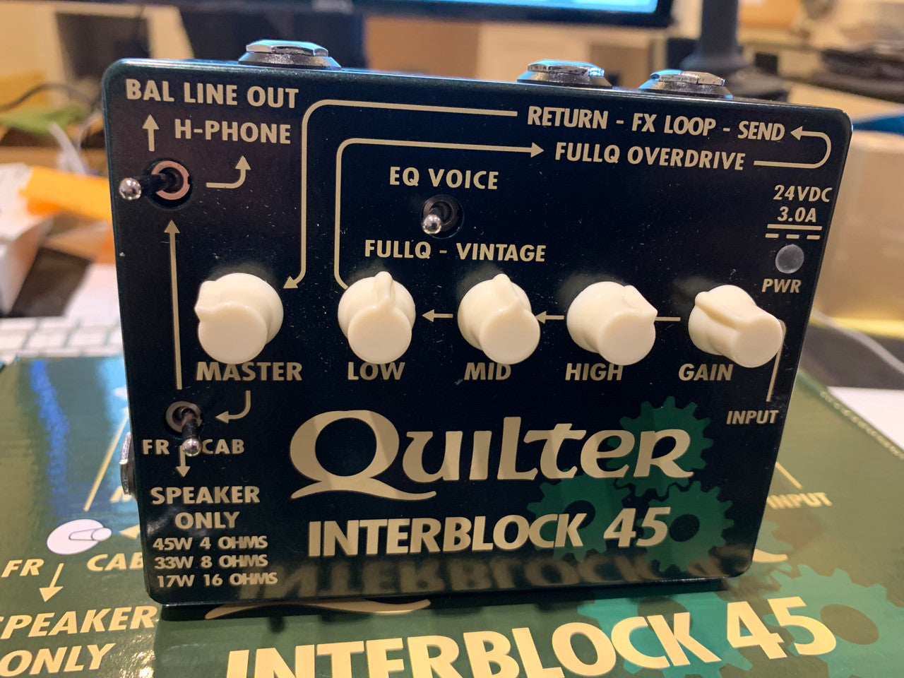 Quilter InterBlock 45 watt guitar amplifier pedal with cab sim out and xlr store demo