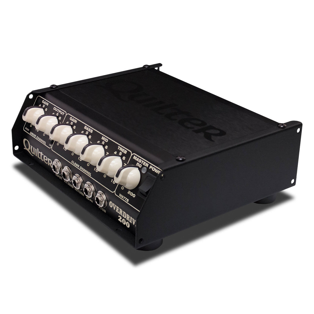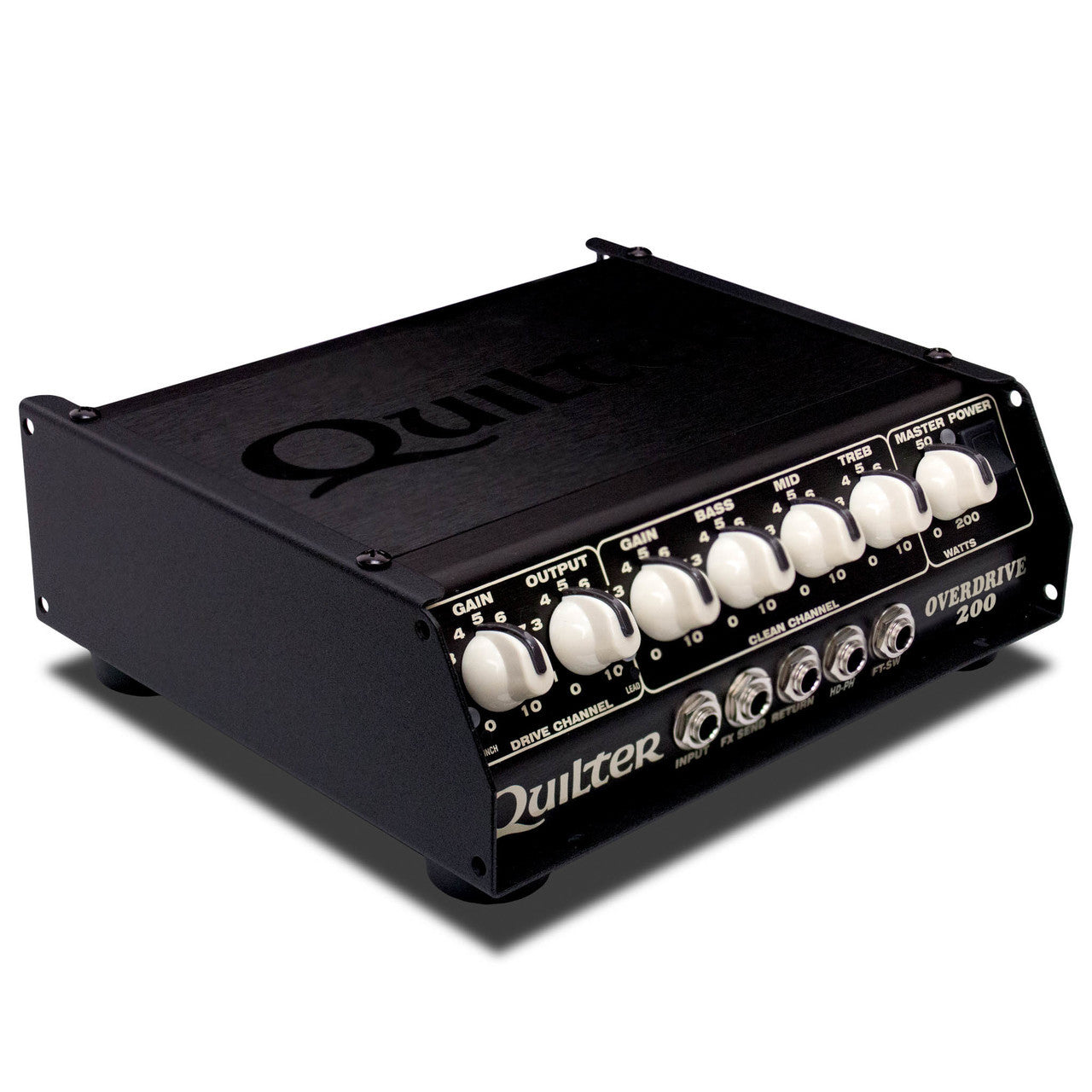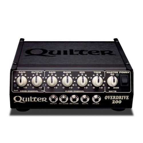 | The Overdrive 200:is inspired by legendary and almost unobtainable amplifiers, bringing an iconic overdrive sound within reach of the average musician. The dynamic 200 watt Quilter Tone Block power section is combined with a traditional “Tone Stack” EQ section to form a classic clean channel, along with multiple switchable drive sections providing several explosive overdriven tones. |  |