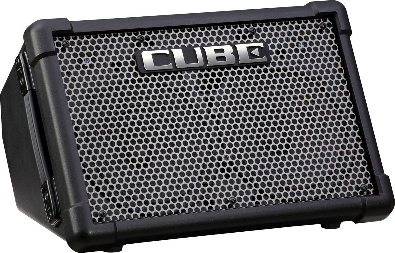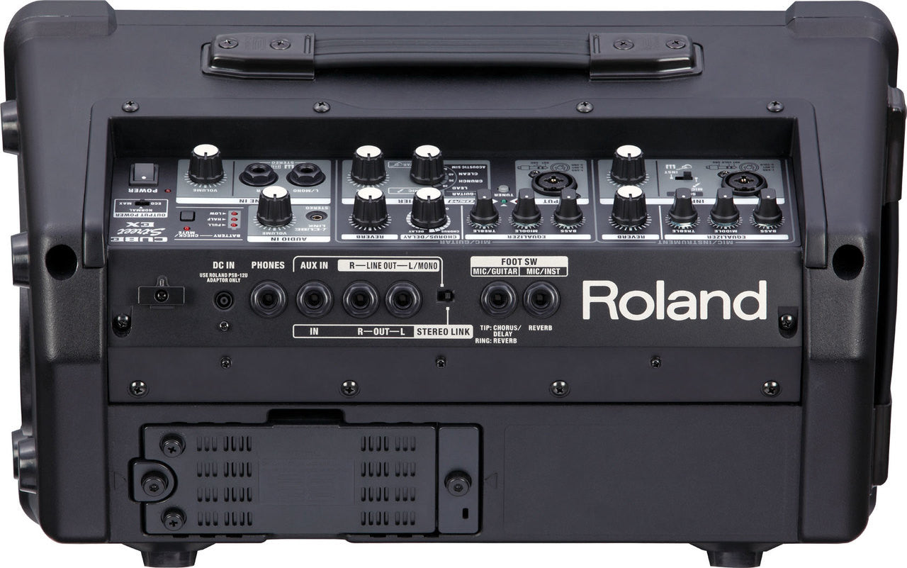With its compact size and battery-powered operation, Roland’s CUBE Street was a huge hit among traveling musicians. Now, the new CUBE Street EX infuses the popular mobile amp with a huge performance upgrade that delivers more projection, more channels, and more versatility. 50 big watts of power and a stereo speaker system with dual woofers and tweeters provide clean, punchy sound for larger crowds, while four independent channels offer abundant connections for a variety of mics and instruments. Detailed sound adjustment is available with separate EQ and reverb controls, and great guitar tones are dialed in easily with the onboard COSM amps. Selectable power modes provide up to 20 hours of operation with eight AA batteries, and two CUBE Street EX units can be linked together for more sound coverage if needed. And with i-CUBE LINK, you can even plug in your iPhone or iPad to play backing music and record your performances!Maximum Power Output50 W (25 W + 25 W)Nominal Input Level (1 kHz)MIC/INSTRUMENT INPUT: -50/-10 dBu