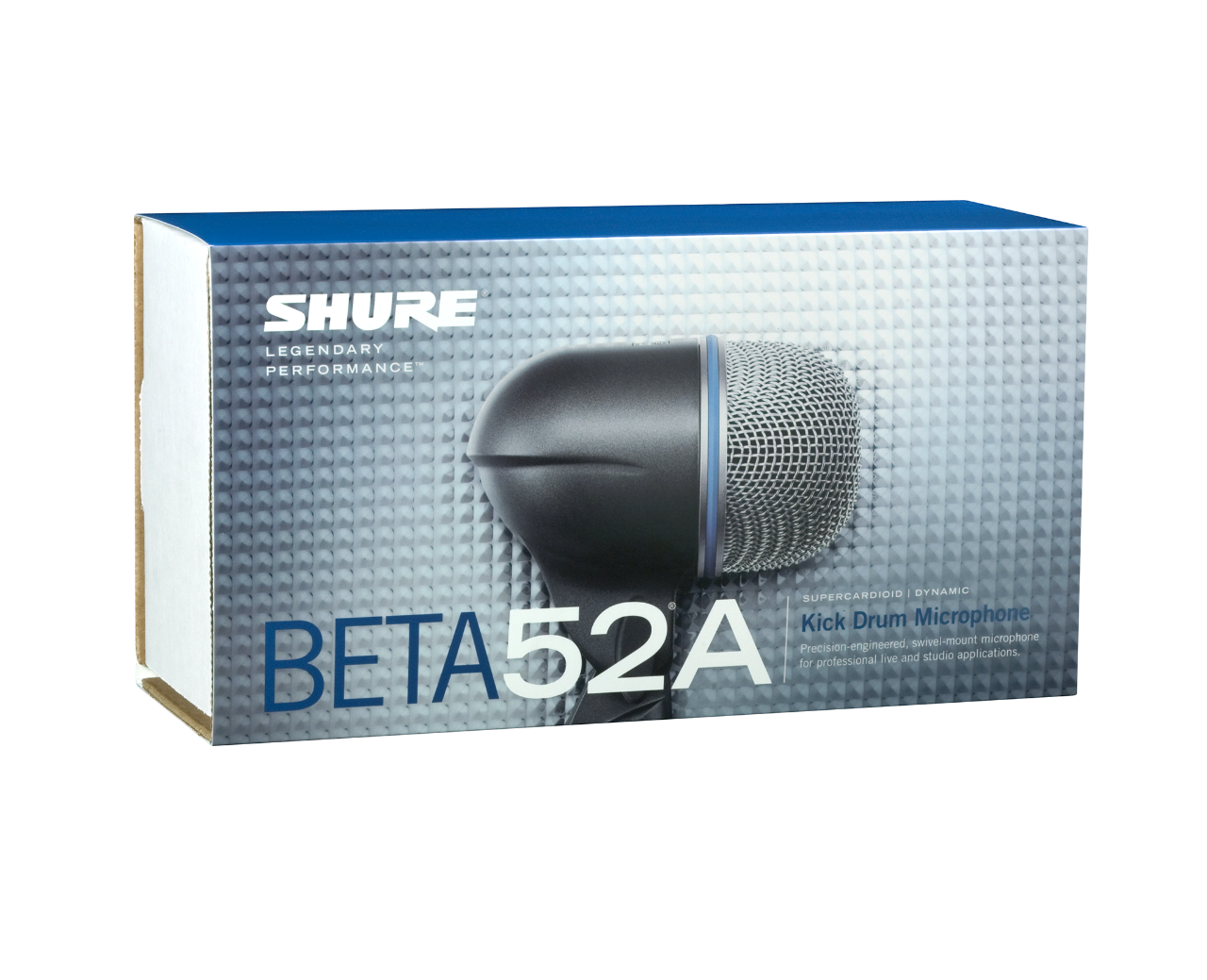 The Shure BETA®52A is a high output dynamic microphone with a tailored frequency response designed specifically for kick drums and other bass instruments. It provides superb attack and "punch", and delivers studio quality sound even at extremely high sound pressure levels.