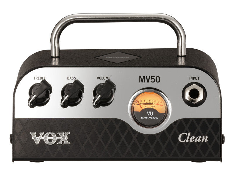 The Vox MV50 Clean mini electric guitar amplifier head and 1 x 8" speaker cabinet ushers in a new level of professional-quality tones and convenience for guitarists chasing high-headroom clean tones. The MV50 Clean utilizes a Nutube in the preamp section for true tube performance, sound, and feel. But the kicker is that it does it all in a package that weighs just over a pound and fits in the palm of your hand. If you're looking for a tone that works as well for clean styles as it does as a pedal platform, the MV50 Clean is the mini stack of your dreams.