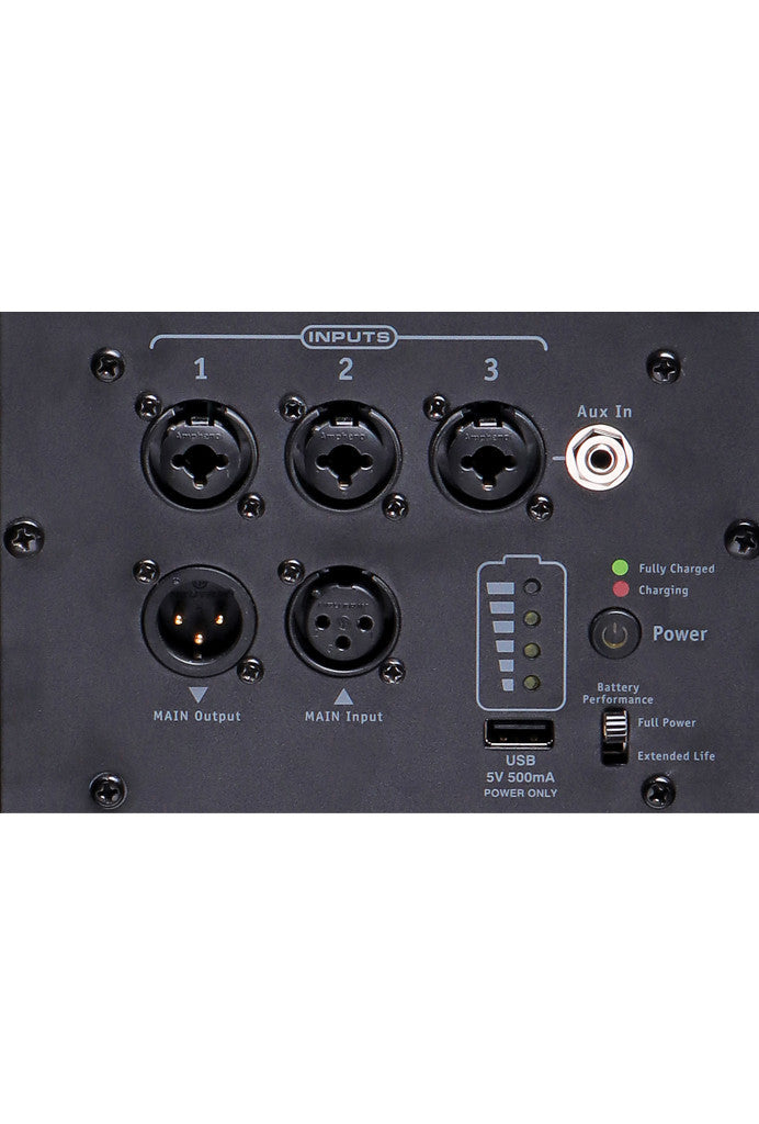 Boasting 10 hours of battery performance at high levels, the EXM Mobile Tower delivers optimal sound for long-running gigs. The EXM Mobile Tower contains a 10-inch subwoofer base and four 3-inch mid-range drivers including a unique dedicated high-frequency driver, making this the best-sounding battery-powered tower available.