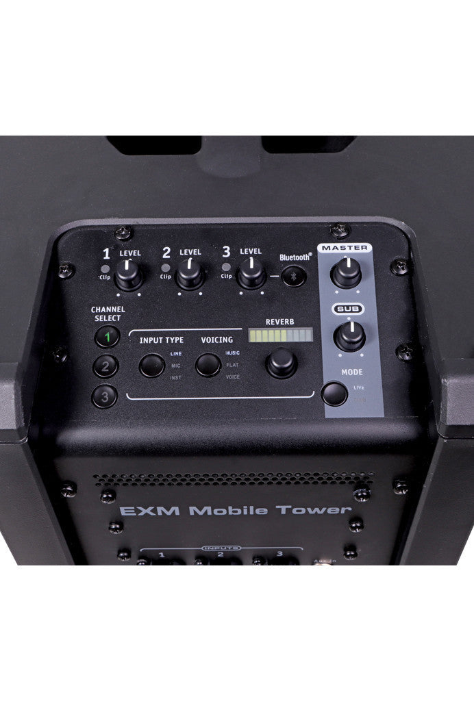With its onboard 3 channel mixer and ready-to-go Live & Club performance modes, the EXM Mobile Tower is prepared to dial in the right sound for your event. Add another EXM Mobile Tower for three more channels and wireless stereo streaming via Bluetooth.
